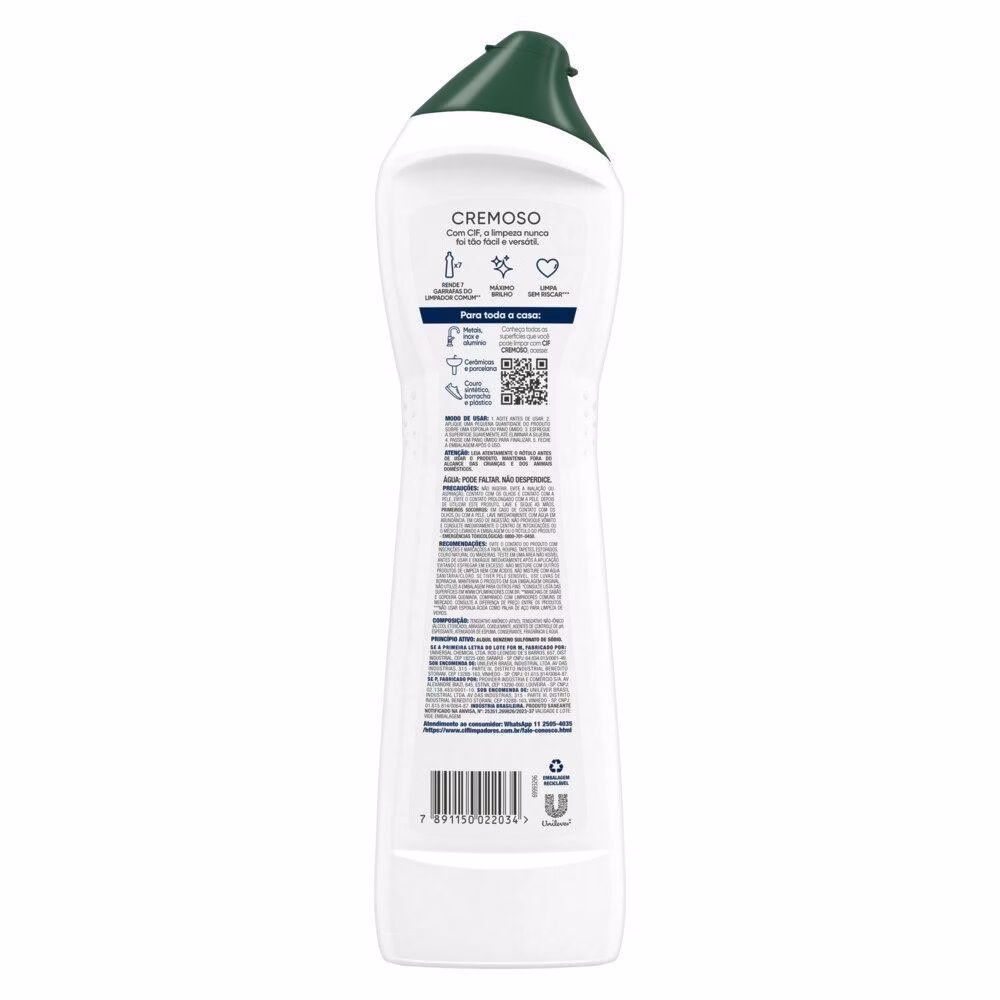 • Cif Cremoso Original é o produto de limpeza milagrosa para todo tipo de objeto como: eletrodomésticos, pias, couro sintético, borracha, plástico, porcelana e serve até como limpador de pisos