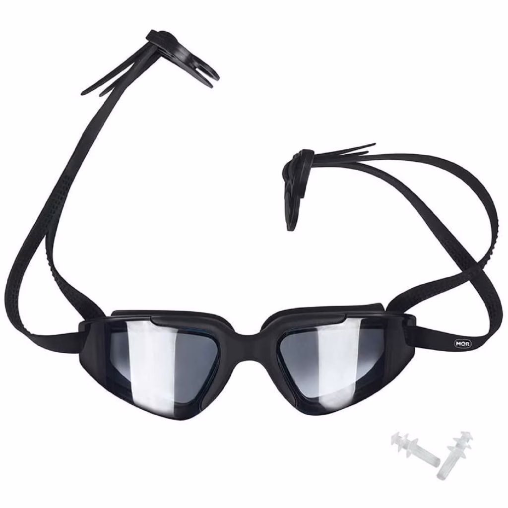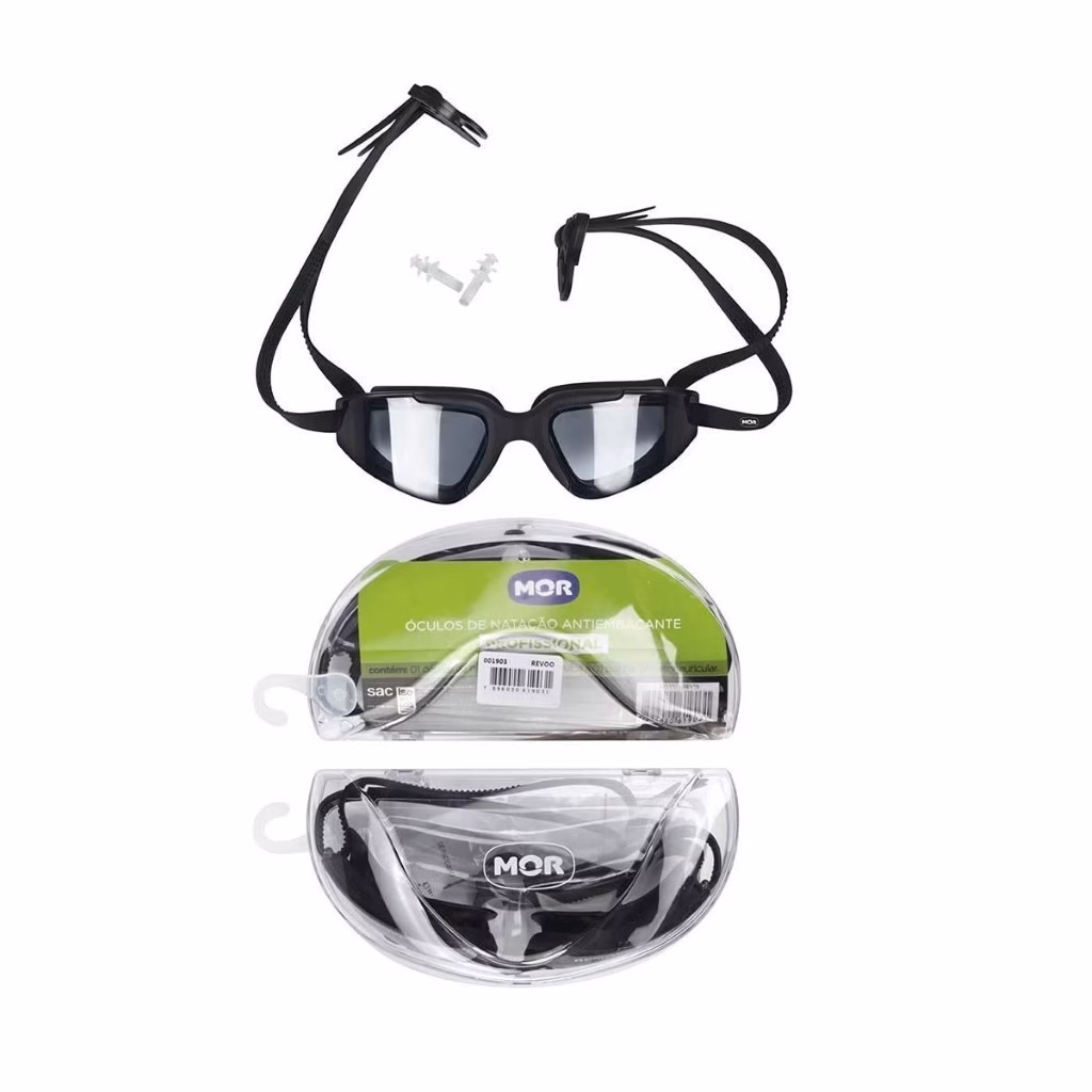 O Óculos de Natação Ante embaçante Profissional da Mor possui lentes em policarbonato, silicone macio ao redor das lentes, tira regulável em silicone, botão de abertura em policarbonato, estojo em polipropileno e protetor auricular em PVC. Disponível em preto, o óculos garante proteção e visibilidade durante seu mergulho!