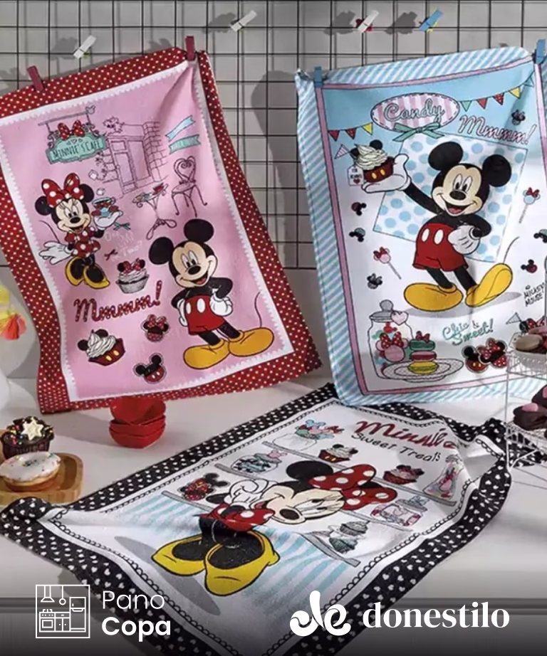 Pano de Copa Döhler Prata Mickey e Minnie 13 medindo 45X65 cmPano de Copa Döhler Prata Mickey e Minnie 13 medindo 45X65 cm