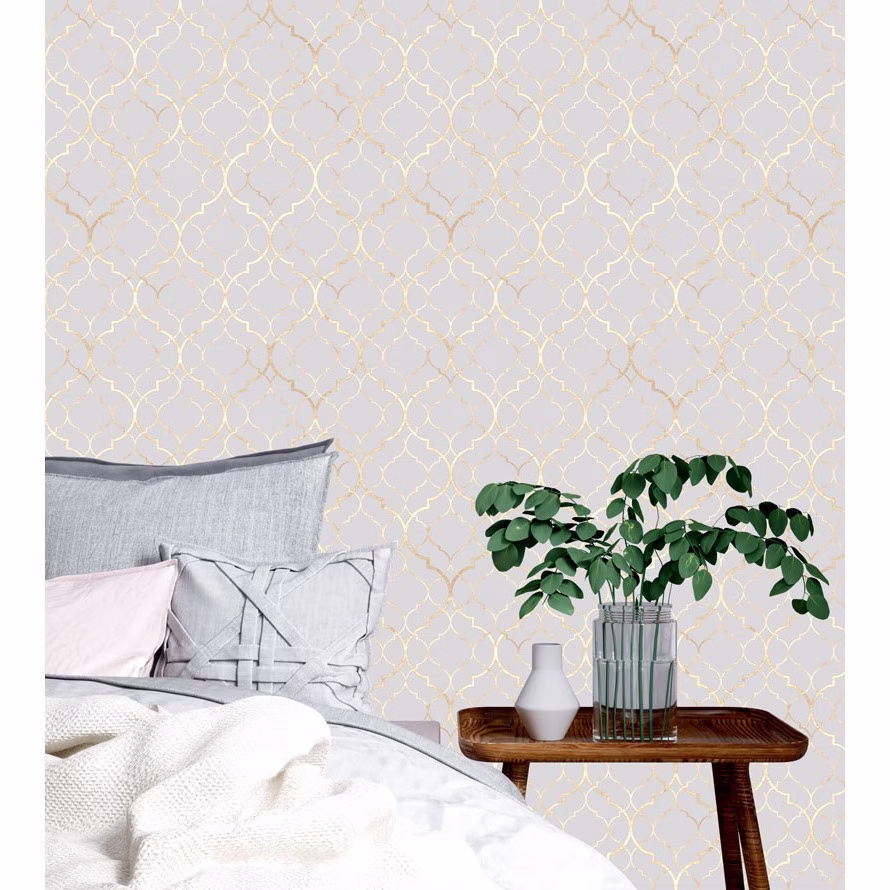 Papel de parede clássico Marrocos em tons de Cinza e Gold Para Sala e Quarto