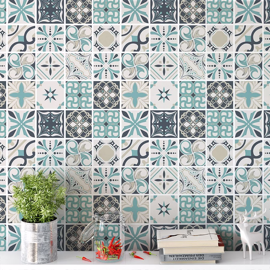 Papel De Parede Ladrilho Azulejo cozinha Em Tons De Azul e Bege