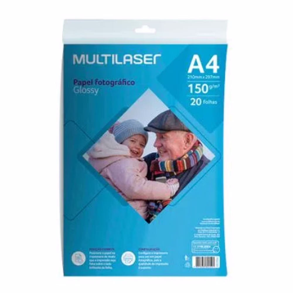 Papel fotográfico A4, com 20 folhas. Suas fotos com mais qualidade. Imagens meramente ilustrativas. Dimensões: Altura: 0,5 cm Largura: 29,7 cm Profundidade: 21 cm Peso: 0,203 kg Garantia do fornecedor: 36 meses