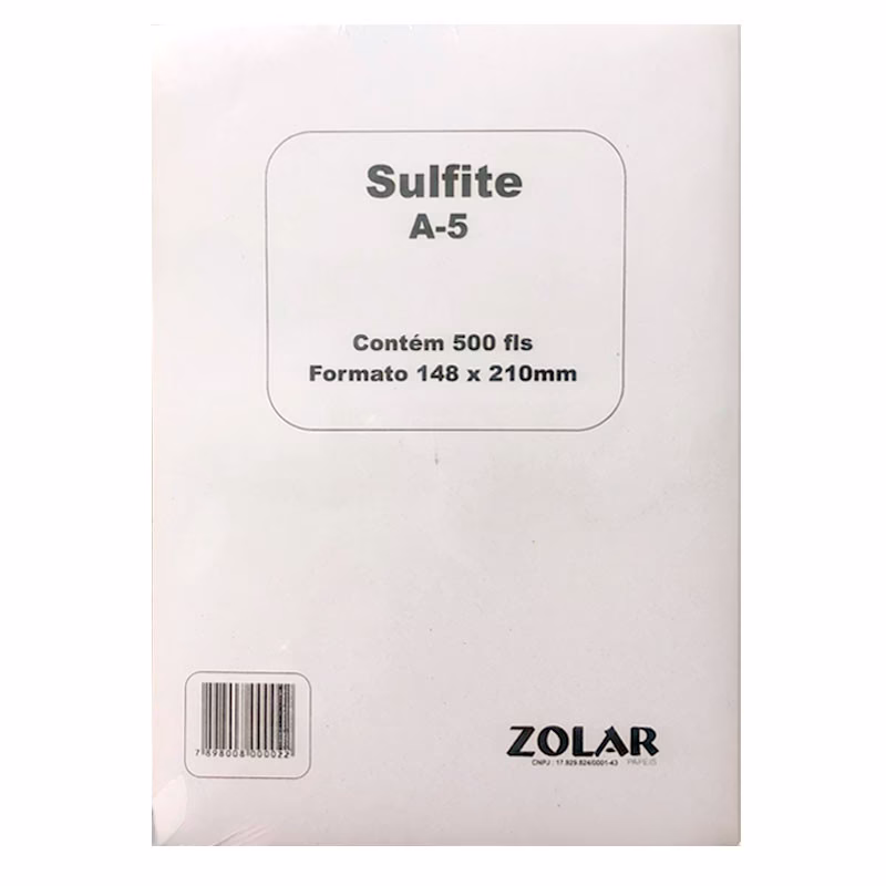 Papel sulfite A5 75g – 210×148,5 – com 500 folhas – Zolar Papeis