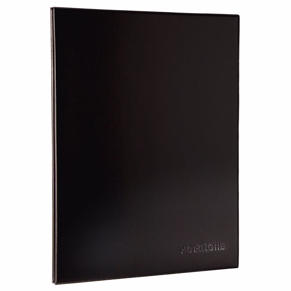 Pasta catálogo sem visor – 508PR – Portfólio A3 – com 10 envelopes plásticos – DacDetalhes:- Cores: Preta- Formato: A3 – 320 mm x 425 mm – Capacidade: 50 envelopes plásticos médios- Composição/Material: PVC