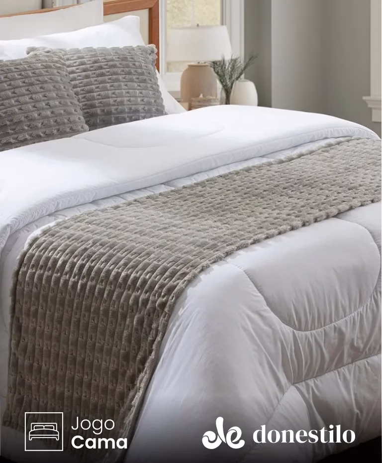Peseira Snow 50×220 cm Jolitex em 100% poliéster. Macia, leve e durável, adiciona charme, conforto e elegância à decoração do quarto.