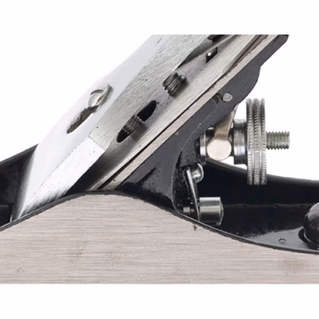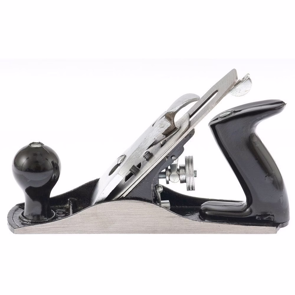 Plaina de metal número 4 possui o corpo produzido em ferro fundido, proporcionando resistência às deformações. Indicada para nivelar, aplainar superfícies de madeira. A lâmina é temperada, feita de aço de corte rápido e conta com mecanismo de alinhamento automático da faca.