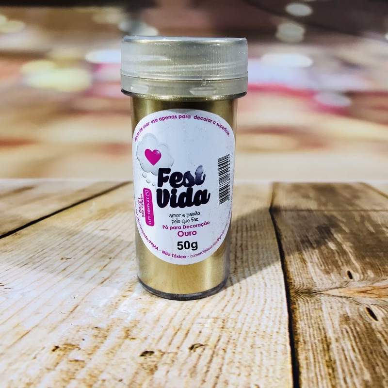 🌟 O PÓ BRILHO OURO COMESTÍVEL DA FEST VIDA É PERFEITO PARA ADICIONAR UM TOQUE SOFISTICADO E GLAMUROSO ÀS SUAS CRIAÇÕES DE CONFEITARIA! COM 50 GRAMAS DE PURO BRILHO DOURADO, ESTE CORANTE É IDEAL PARA DECORAR BOLOS, CUPCAKES, BISCOITOS, CHOCOLATES, DOCINHOS E MUITO MAIS. POLVILHE DIRETAMENTE SOBRE AS PREPARAÇÕES SECAS OU MISTURE COM ÁLCOOL DE CEREAIS PARA PINTURAS METÁLICAS DESLUMBRANTES, ELEVANDO O NÍVEL DAS SUAS DELÍCIAS! 🤩