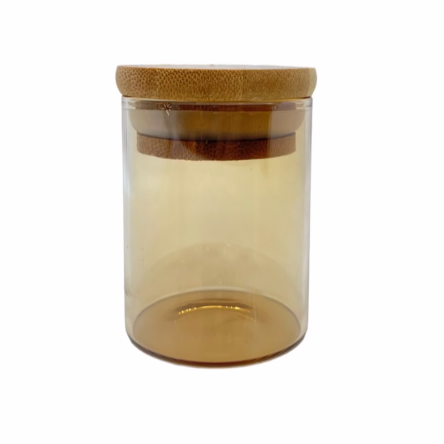 Pote de Vidro Âmbar Hermético com Tampa de Bambu – 6x8cm – 160ml – 1 unidade – Rizzo