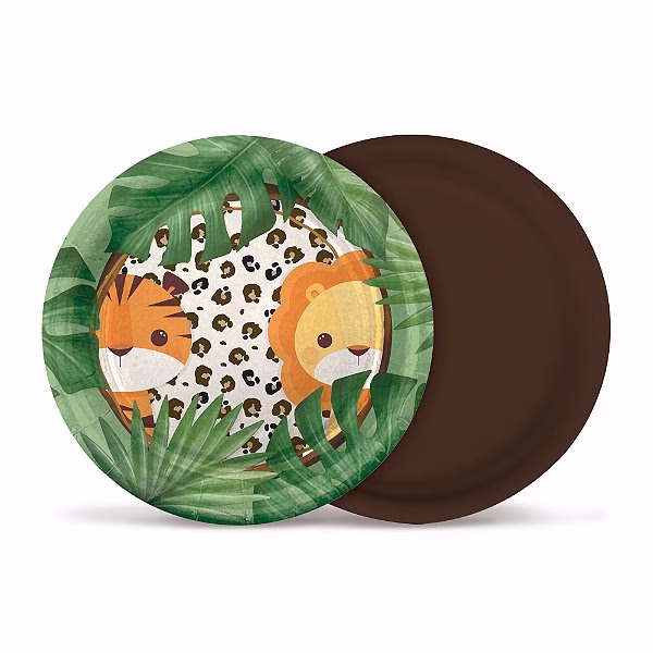 Utilize os Pratos de Papel Safari para colocar na mesa de comes e bebes ou na mesa principal para completar a decoração.