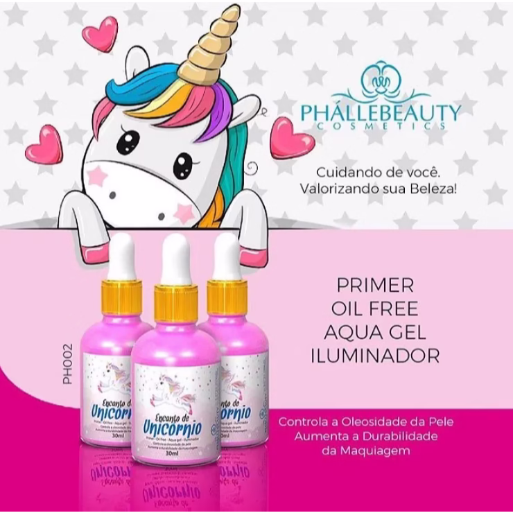 O Encanto de Unicórnio da PhálleBeauty é mais uma recente novidade no mercado da beleza, ele controla a oleosidade da pele e aumenta a durabilidade da maquiagem. Primer Oil Free Aqua Gel Iluminador.