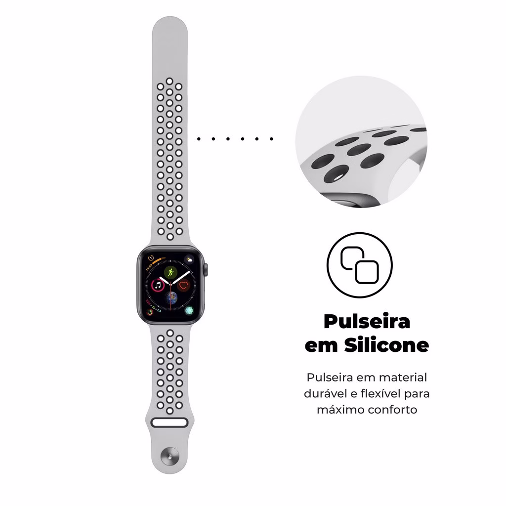 Pulseira para Apple Watch 42mm /44mm Armor Running – Branco e Preto – Gshield