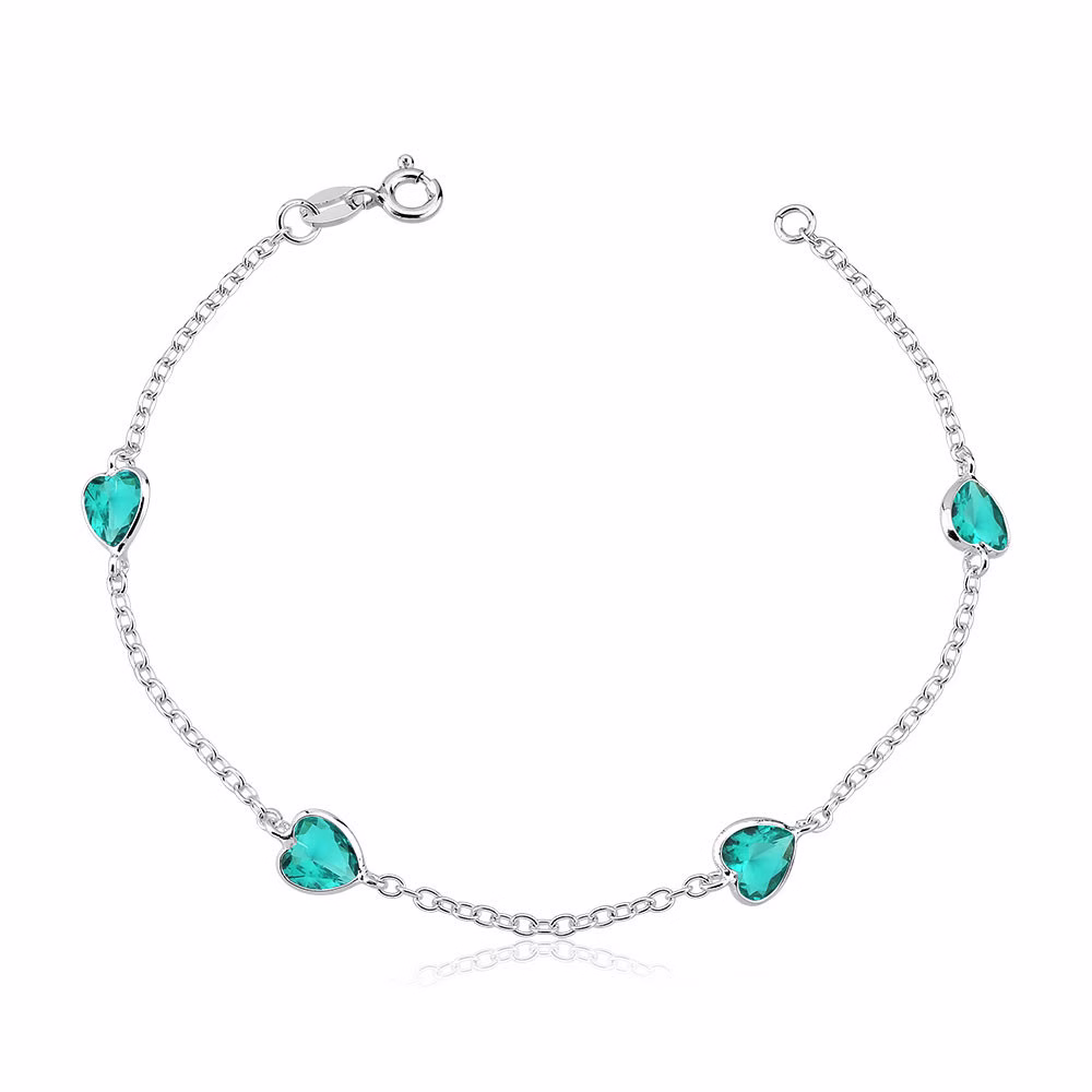 Pulseira prata 925 feminina coração zirconia turmarlina – Prata legitima