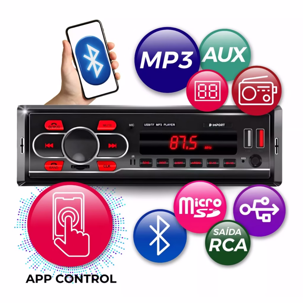 Aproveite toda a praticidade e qualidade do Rádio MP3 FP 100 da FP IMPORT. Um modelo completo, com Bluetooth, 2 entradas USB e visual moderno com iluminação em 7 cores. Ideal para quem quer melhorar o som do carro com ótimo custo-benefício.
