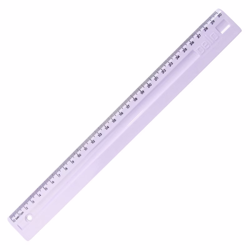 – Régua de 30cm injetada em poliestireno, super resistente (espessura de 3,4 mm).