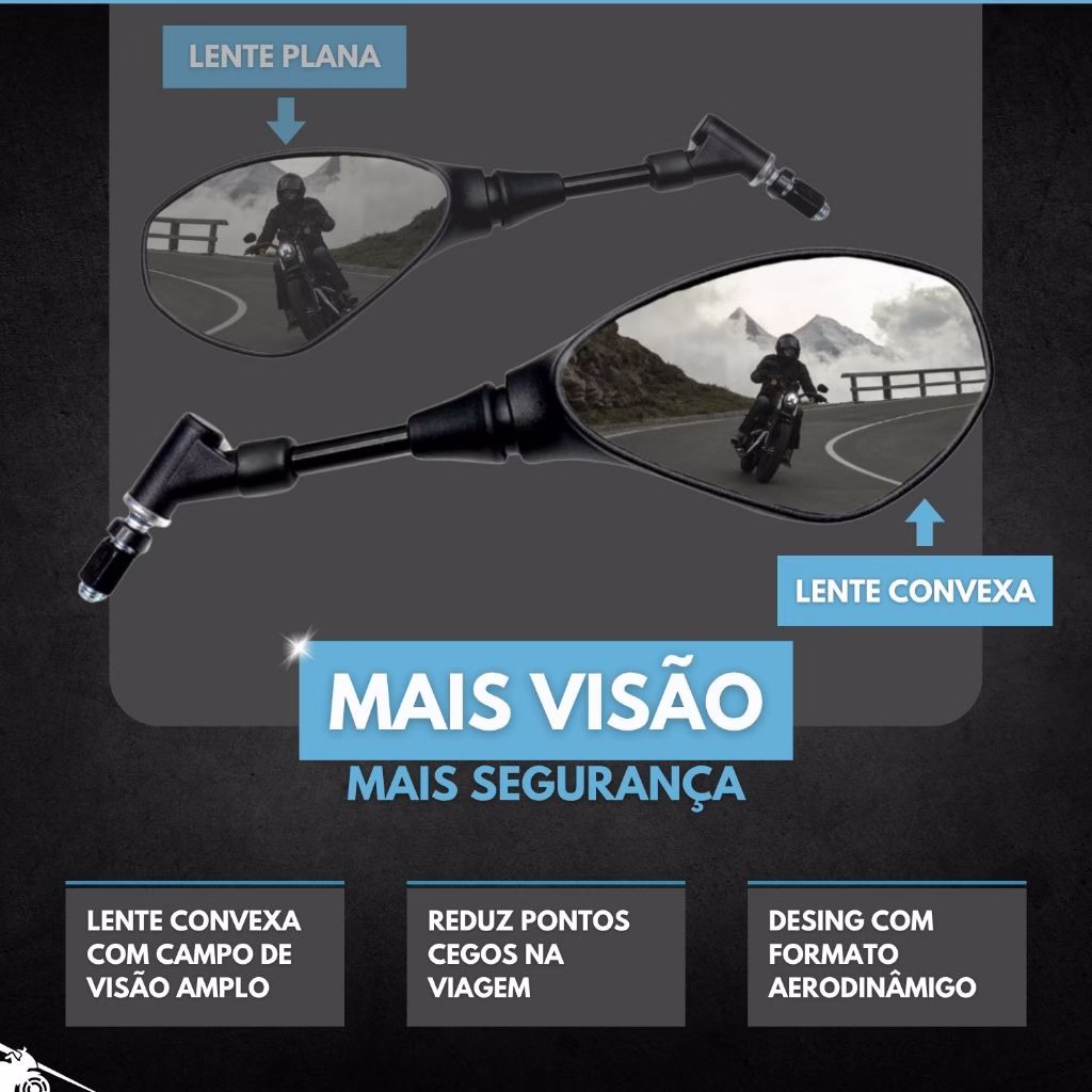• Articulado, permite ajustes precisos para melhor visibilidade e conforto na condução.