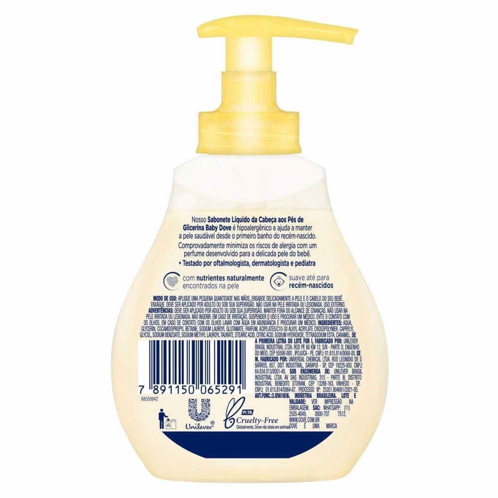 • O Sabonete Líquido Baby Dove Hidratação Glicerinada limpa suavemente e ajuda a manter a pele do seu bebê macia e saudável, desde o primeiro banho