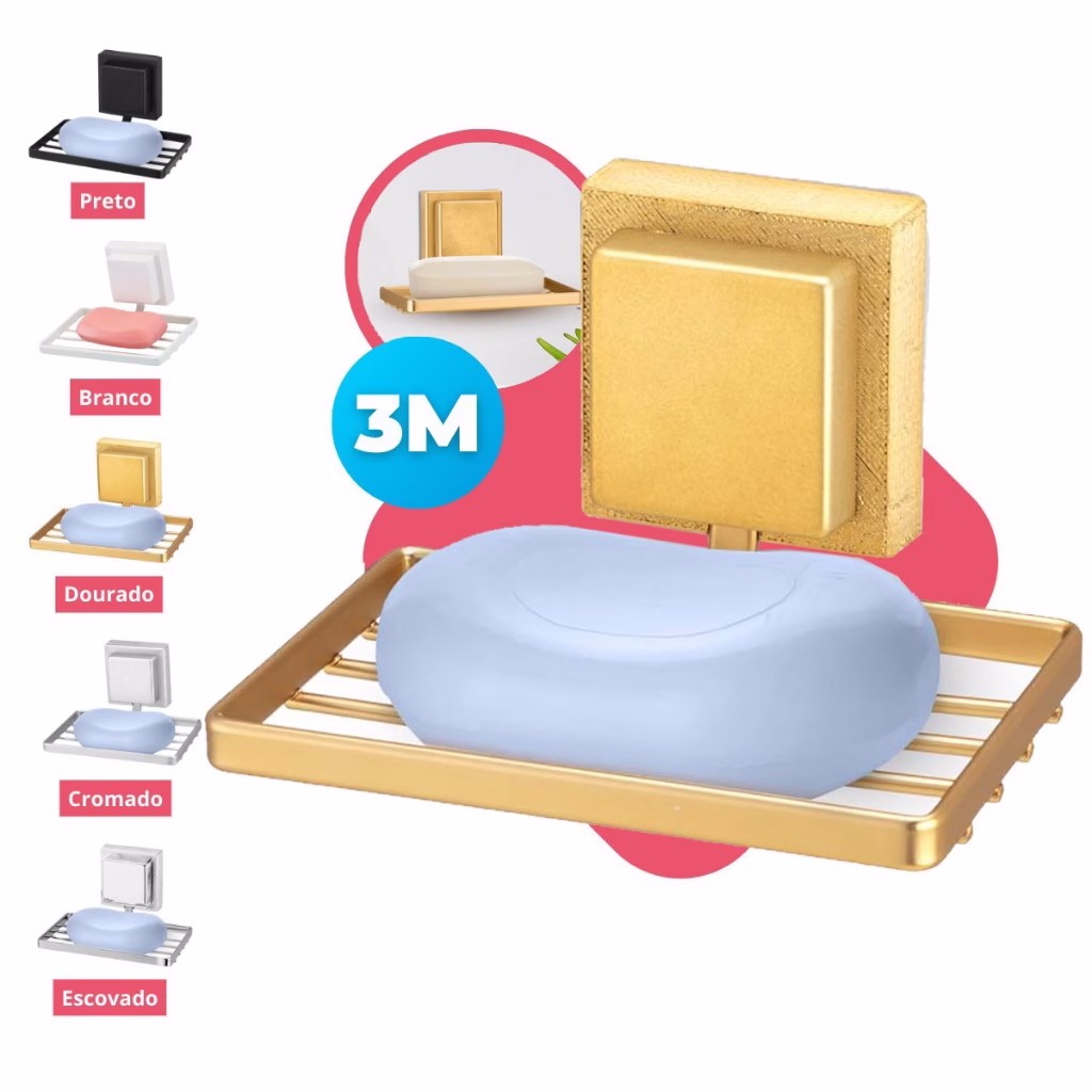 Saboneteira Banheiro Suporte Parede Porta Sabonete Fixação Dupla Face 3M Sem Furo Arthi