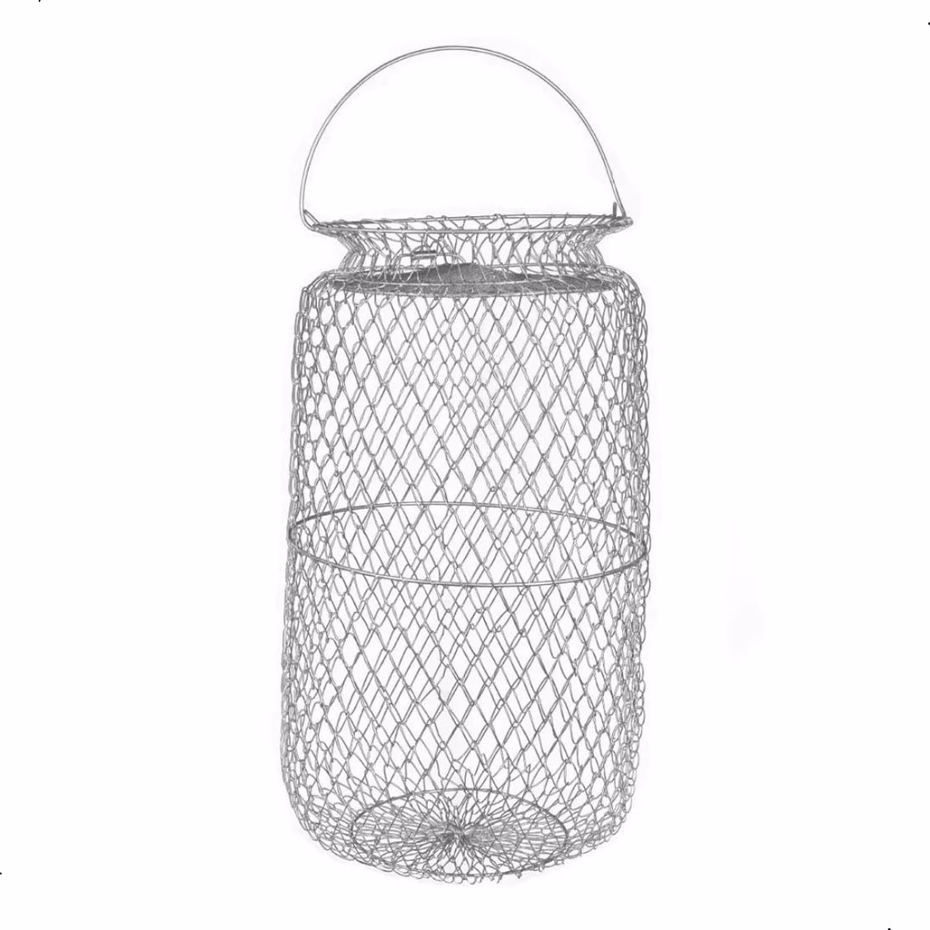 O Samburá Arame Com Tampa é o equipamento que não pode faltar nas pescarias, sua estrutura em arame de aço reforçado que o torna muito mais resistente e durável, possui uma alça para carregar ou até mesmo deixá-lo preso dentro da água para conservar os peixes, conta com uma porta de fechamento por mola que não abre para dentro, assim os peixes não escapam, estrutura desenvolvida de modo que é possível fechá-lo por completo, deixando mais prático e compacto na hora de transportá-lo.