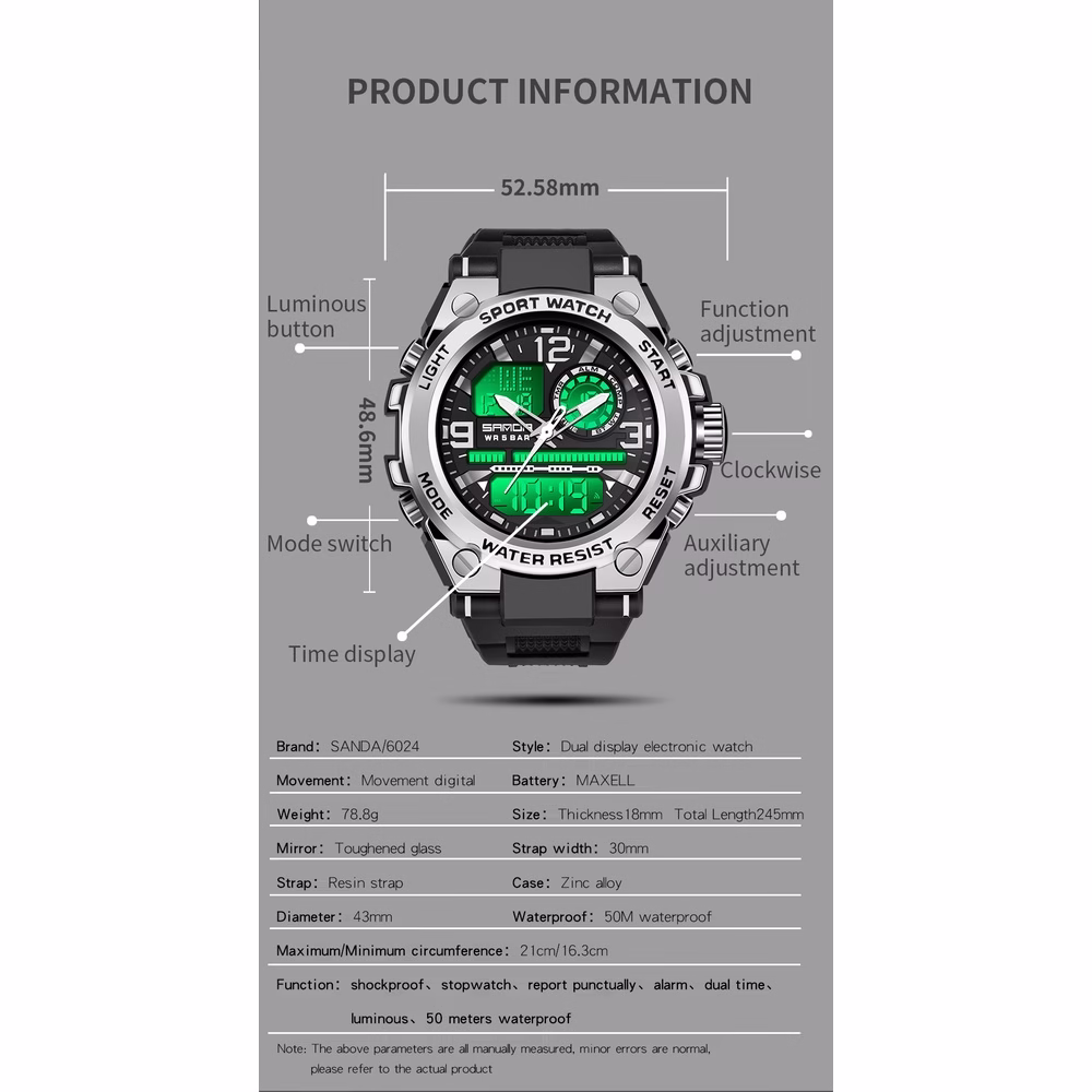 Sanda Relógio Masculino à Prova D'água Relógio Esportivo Moda Luxo LED Digital Militar Multifuncional Relógio MasculinoSanda Relógio Masculino à Prova D’água Relógio Esportivo Moda Luxo LED Digital Militar Multifuncional Relógio Masculino