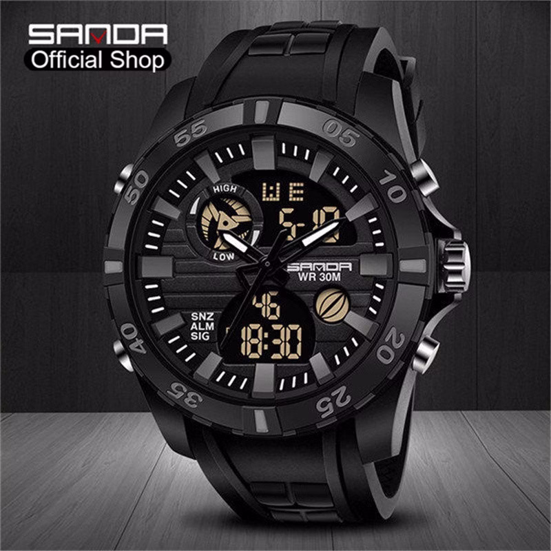 SANDA Relógio Masculino Esportivo à Prova D’água Para Homem Com Tela Dupla LED