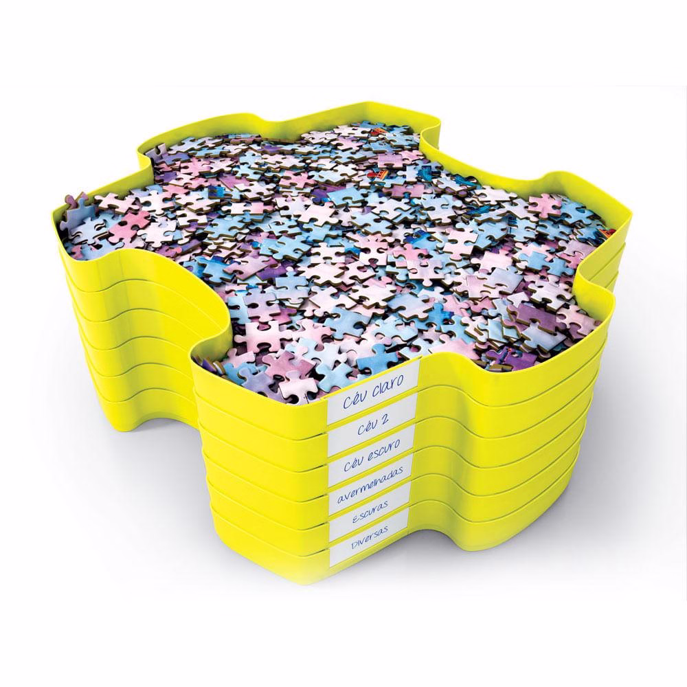 O Separador de Peças é o acessório ideal para separar as peças do seu quebra-cabeça por cor, imagem ou formato, além de conservá-las e protegê-las durante a montagem. As bandejas, em formato de peça de quebra-cabeça, são resistentes, empilháveis e encaixam umas nas outras durante a utilização.