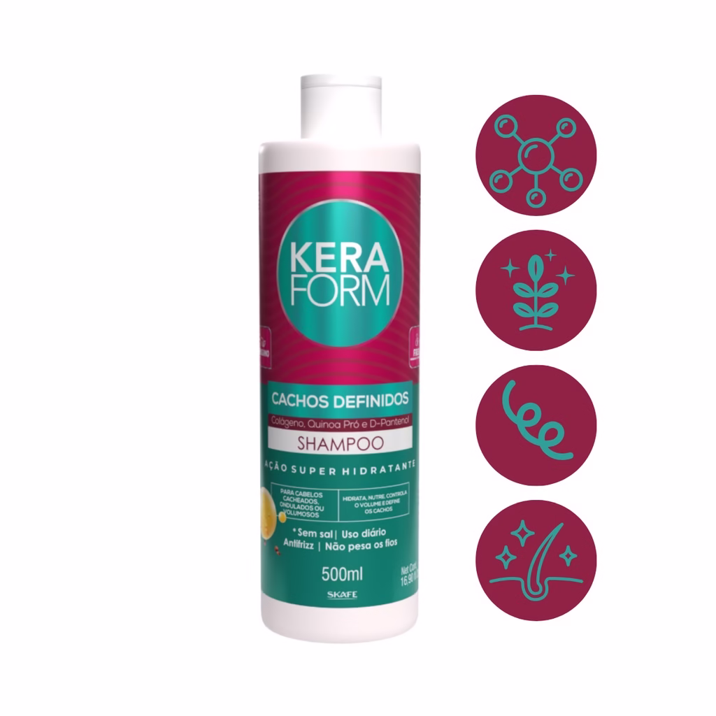 O Shampoo Keraform Cachos Definidos limpa de maneira natural, hidrata e nutre profundamente. Controla o volume e define os cachos, deixando-os ultra sedosos, com balanço e cheios de vida.