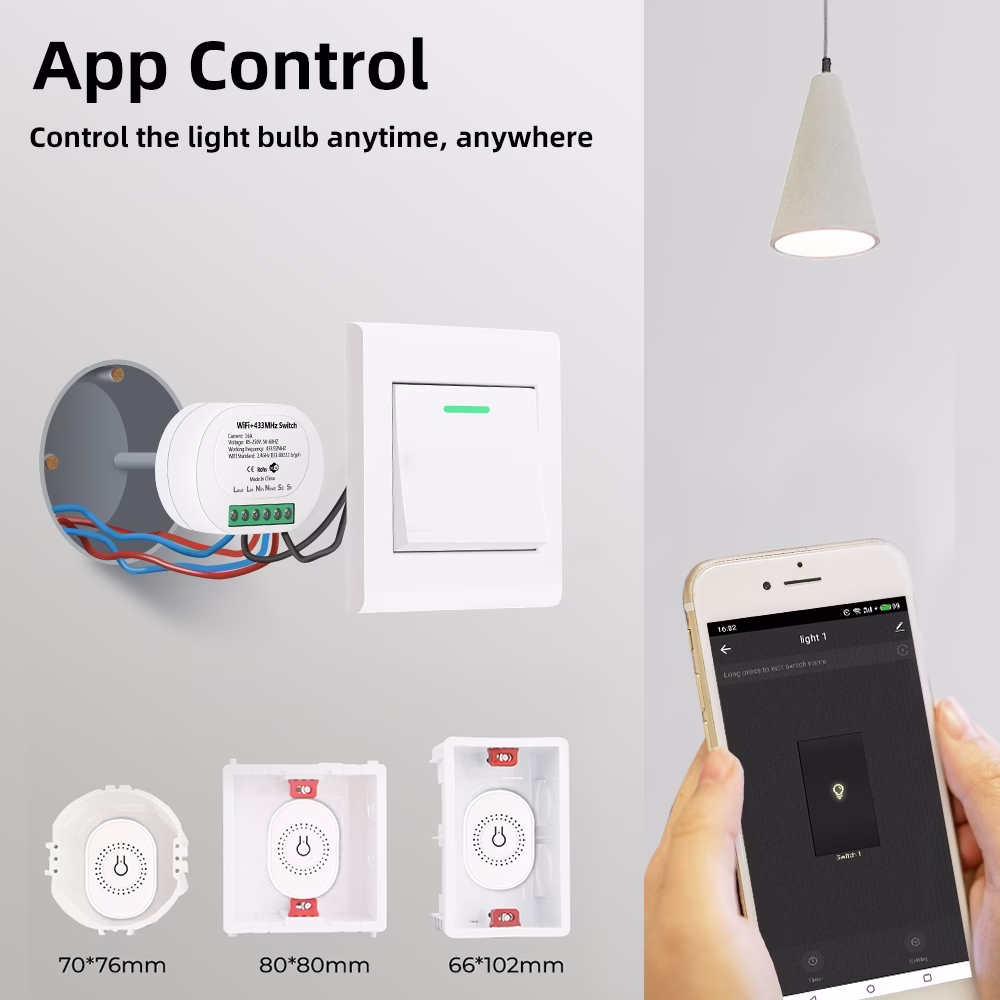 2.WIFI+433: It can be controlled by tuya APP, voice speaker, and can be controlled by wireless switch and remote control, which is more convenient