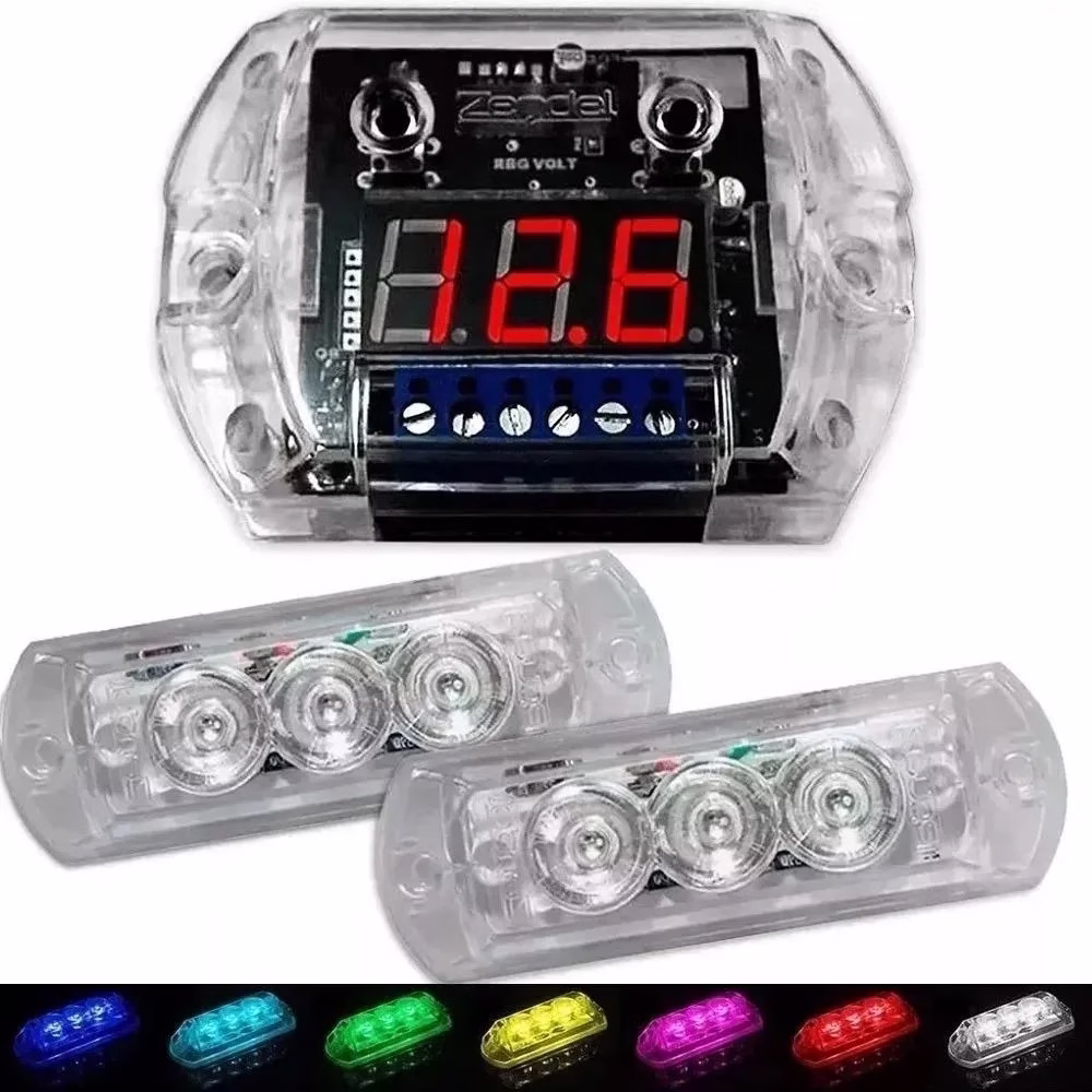Kit Strobo Automotivo Rgb 7 Cores 12 Efeitos Com Voltímetro Zendel
