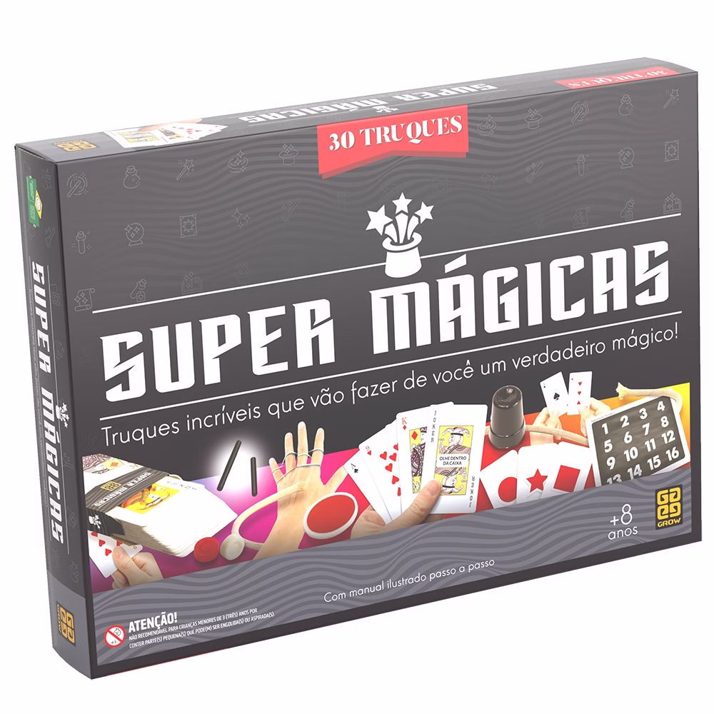 O Jogo Super Mágicas é bastante lúdico e tem capacidade de prender a atenção tanto de crianças quanto de adultos. É comum, na infância, nos apaixonarmos por mágicas com cartas ou desaparecimento de objetos. Pensando nisso, a Grow traz ao mercado a opção ideal para os pequenos se tornarem o centro das atenções de qualquer festa.