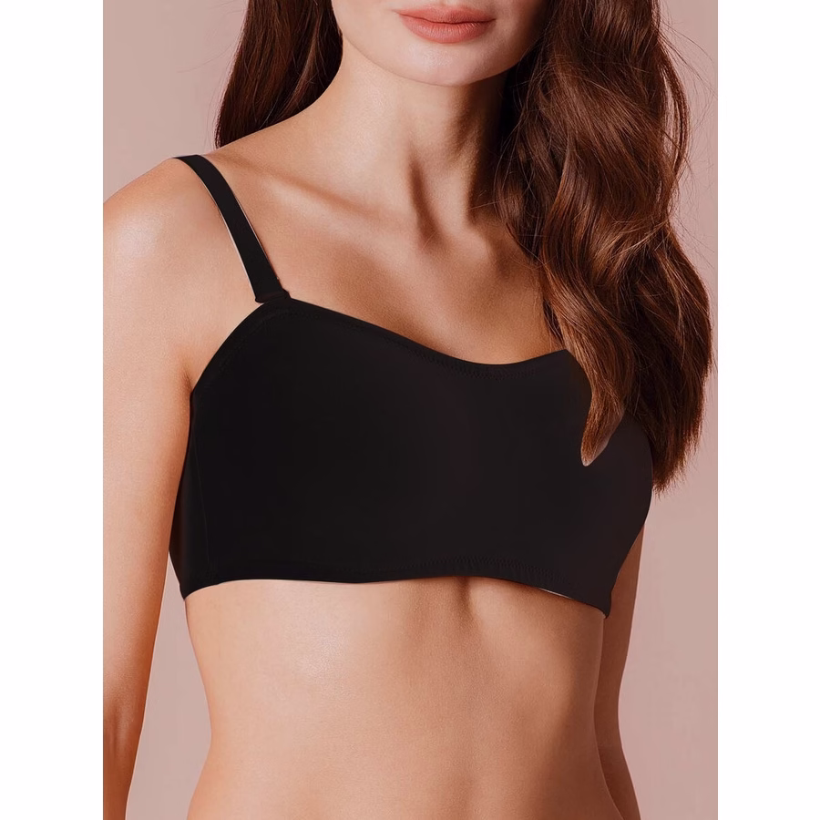 Parte superior interna com aplicação de faixa em silicone aderindo à pele e conferindo segurança.