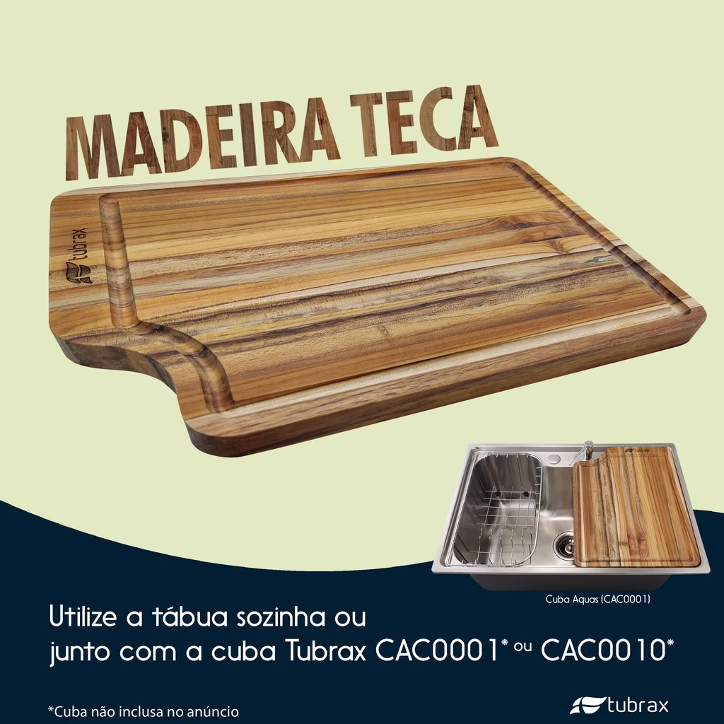 Tábua de Preparação de Alimentos Tubrax em Madeira Teca exclusiva para Cubas Tubrax CAC0001 e CAC0010 – Referência MAC0002