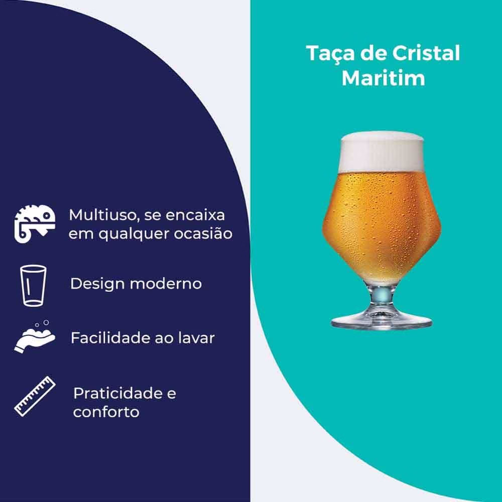 Produzida em cristal de alta qualidade, com capacidade de 410ml, a Taça de Cerveja Maritim combina transparência cristalina e design sofisticado. Além de funcional, é uma peça que encanta, sendo perfeita para ocasiões especiais, encontros com amigos ou como presente sofisticado para surpreender familiares e amigos.