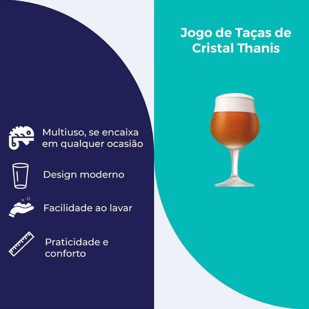 A Taça de Cristal Thanis é um modelo elegante e sofisticado, perfeita para apreciar sua Cerveja favorita com requinte. Produzida em cristal de alta qualidade, com capacidade de 580ml, combina transparência cristalina e design refinado, tornando-se um objeto de desejo para sua casa ou encontros com amigos.