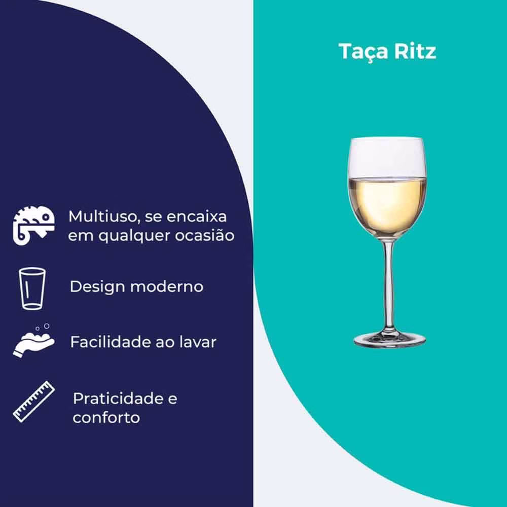 Com 335ml de capacidade, seu formato médio potencializa a intensidade aromática e realça o caráter frutado dos melhores vinhos brancos. Além de indispensável para quem aprecia sofisticação à mesa, a Taça de Vinho Ritz é um presente elegante e desejado, capaz de encantar amigos e familiares em qualquer ocasião especial.