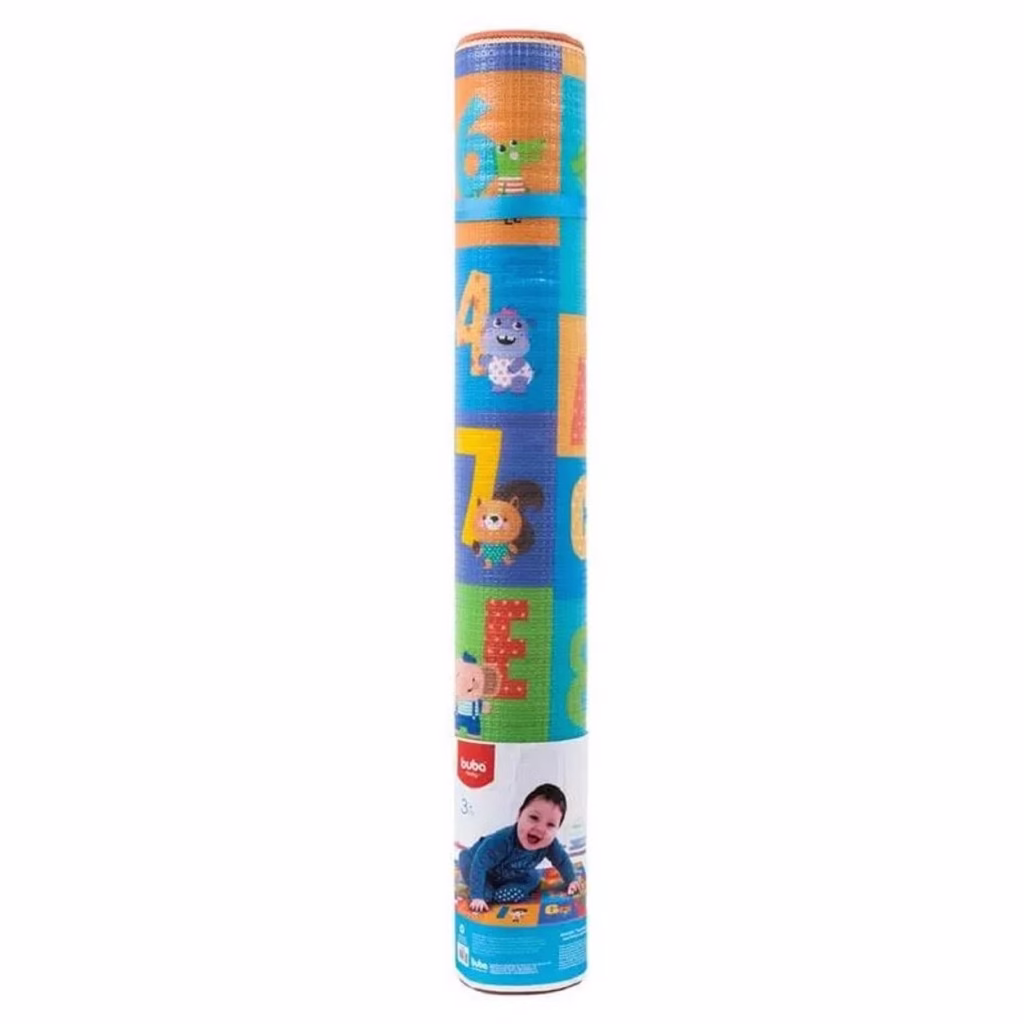 Buba é macio para os bebês brincarem, sentarem e deitarem no chão com conforto e segurança. É impermeável permitindo brincadeiras sem se preocupar com sujeiras e é dupla face, possui estampas divertidas e educativas nos dois lados. O tapete pode amortecer a queda das crianças evitando que se machuquem durante as brincadeiras, deixando a família mais tranquila. A Linha Buba Baby traz itens pensados com muito carinho para o seu bebê. Através de cores, formas e texturas, estimula todos os sentidos, contribuindo para o crescimento saudável das crianças.