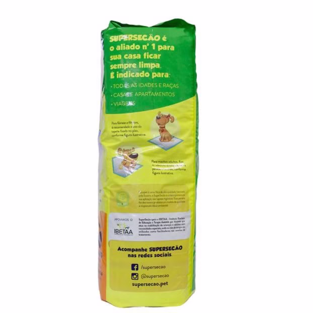 O Tapete Higiênico Super Secão é o inimigo nº 1 do mau cheiro e vazamento. É super absorvente e pode ser usado por cães adultos e filhotes. Este Tapete Higiênico Super Secão é ideal para pets de todos os tamanhos e idades, fabricado com atrativo canino, gel absorvente e fita adesiva autocolante com barreira que impede o vazamento do xixi. Mantém o ambiente em que seu pet vive sempre limpinho.