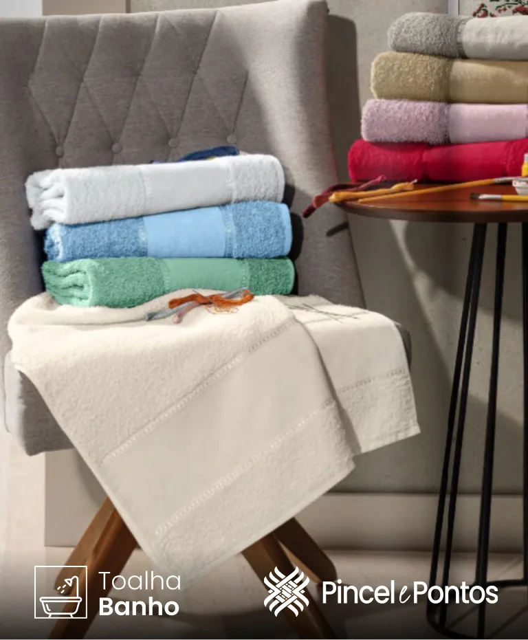 Toalha de Banho Garmisch Ponto Russo para Bordar e Pintar combina funcionalidade e beleza. Você aproveita sua composição 100% algodão (exceto efeito decorativo), que garante maciez, alta absorção, durabilidade e excelente respirabilidade. Suas medidas de 70×140 cm e gramatura de 380g/m² oferecem a base perfeita para bordados personalizados no barrado exclusivo. Essa toalha é uma excelente escolha para uso próprio ou para presentear com estilo e praticidade.