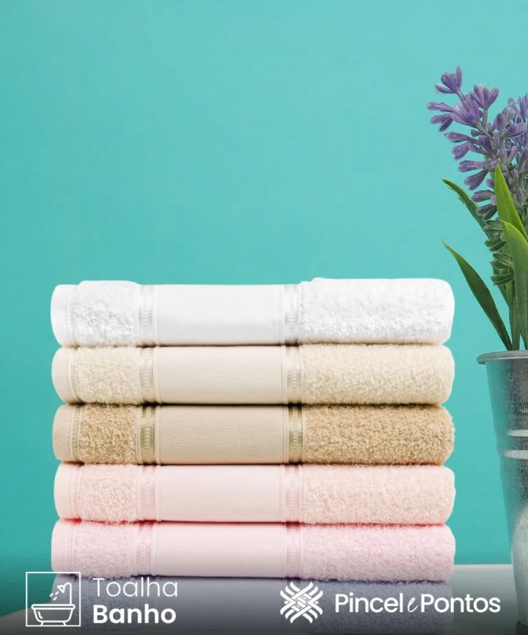 Toalha de Banho Karsten Bruna II 67×140 cm para Pintar ou Bordar na máquina: Com largura da barra de 11 cm, é ideal para personalização como pintura, patch aplique, bordado em máquina e ponto cheio. É antipilling e possui corpo felpudo, proporcionando textura macia e confortável. Composta por 97% de algodão, 3% de viscose e gramatura 370g/m², garante boa absorção. É uma excelente escolha para uso diário e projetos de personalização.