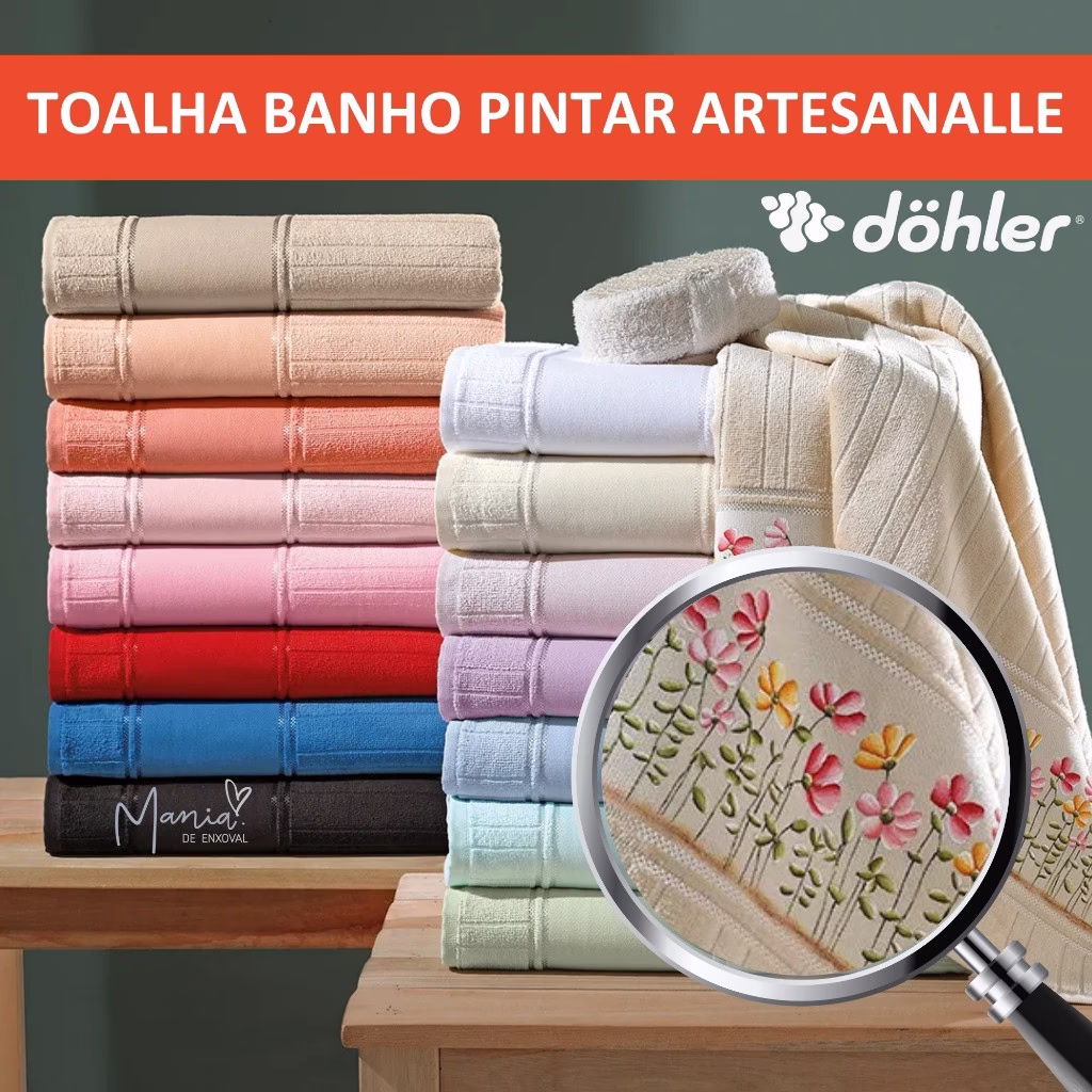 Descubra a aliada perfeita para dar vida às suas criações artesanais! A toalha de banho Döhler para pintura à mão e bordado à máquina é simplesmente a MELHOR do mercado quando o assunto é versatilidade, beleza e qualidade. Seja você uma artista experiente ou iniciante apaixonada, essa toalha foi feita para valorizar cada detalhe do seu talento. ✨