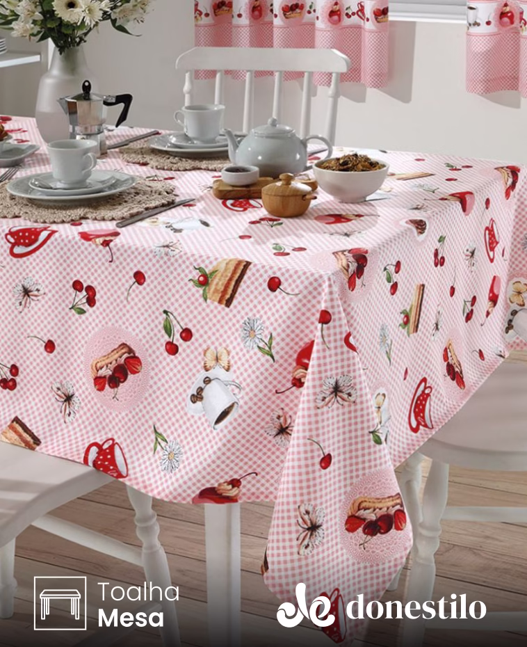 Toalha de Mesa Quadrada Döhler para 4 lugares, modelo Athenas Ivana (1,40 x 1,40 m) com ilustrações delicadas de doces, a estampa transmite doçura e aconchego para a sua mesa. Prática e versátil, é ideal para o dia a dia. Além disso, o produto possui o selo Döhler Clean, que adiciona uma camada protetora, facilitando a limpeza e aumentando a durabilidade da toalha. Confeccionada com 50% algodão e 50% poliéster, esta toalha tem gramatura de 170 g/m², combinando resistência e suavidade ao toque.