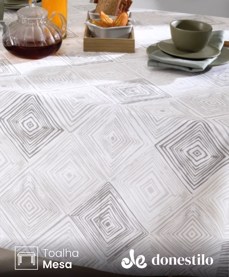 Toalha de Mesa Quadrada Döhler para 4 lugares, modelo Athenas Martin (1,40 x 1,40 m), traz seu design moderno, oferecendo leveza e sofisticação à sua cozinha. Com tecnologia de estamparia digital, sua fabricação é mais sustentável, e os desenhos apresentam uma riqueza de detalhes e alta qualidade. Além disso, o produto possui o selo Döhler Clean, que adiciona uma camada protetora, facilitando a limpeza e aumentando a durabilidade da toalha. Confeccionada com 50% algodão e 50% poliéster, esta toalha tem gramatura de 170 g/m², combinando resistência e suavidade ao toque.