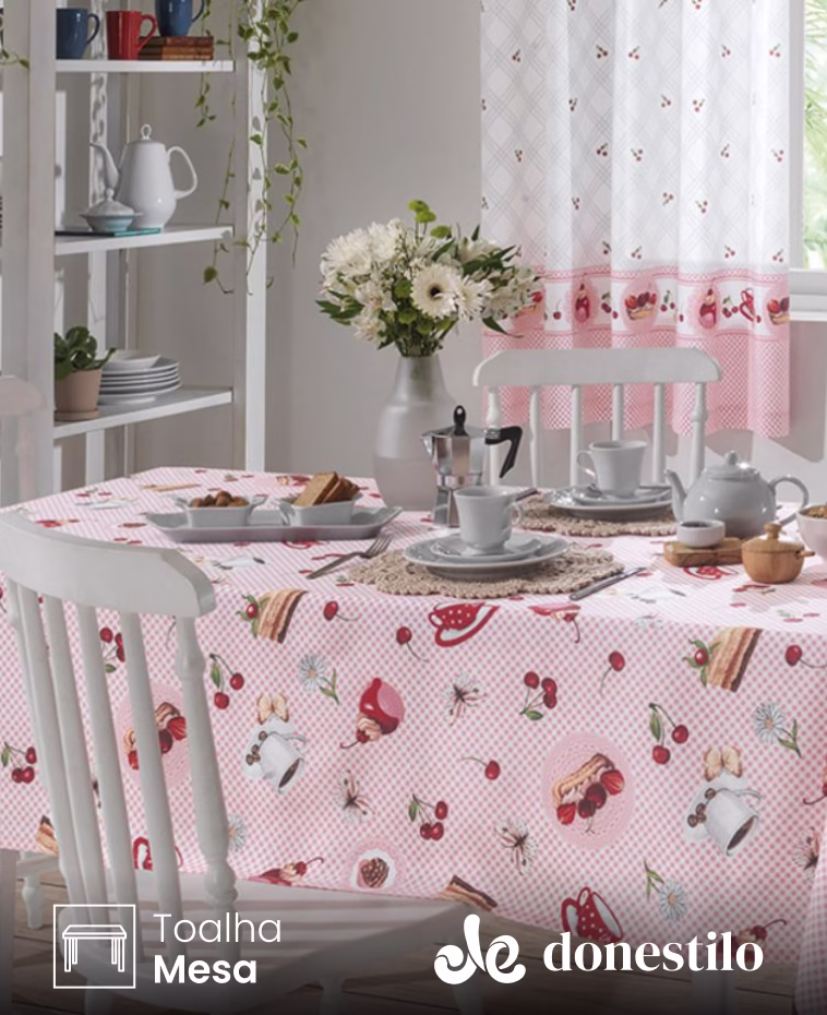 Toalha de Mesa Retangular Döhler para 8 lugares, modelo Athenas Ivana (1,60 x 2,50 m), traz seu estilo doce, feminino e aconchegante. Prática e versátil, é ideal para o dia a dia. Além disso, o produto possui o selo Döhler Clean, que adiciona uma camada protetora, facilitando a limpeza e aumentando a durabilidade da toalha. Confeccionada com 50% algodão e 50% poliéster, esta toalha tem gramatura de 170 g/m², combinando resistência e suavidade ao toque.