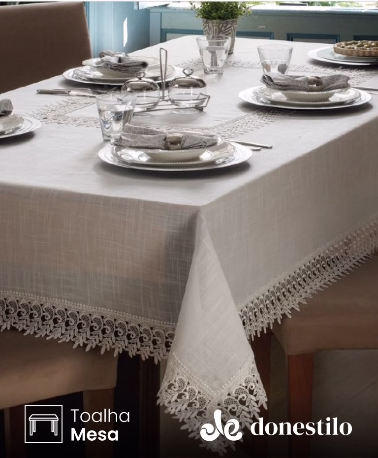 A Toalha de Mesa Retangular Jolitex, modelo Delhi, é ideal para 6 lugares, medindo 1,50 x 2,20 metros. Feita de 100% poliéster, ela garante durabilidade, praticidade e elegância excepcionais. Seu estilo romântico na cor branca, com barrado e centro em renda, transforma qualquer sala de jantar ou cozinha, criando um ambiente acolhedor, harmonioso, iluminado e sereno. Essa toalha é a escolha perfeita para quem deseja adicionar um toque de sofisticação e conforto às suas refeições.