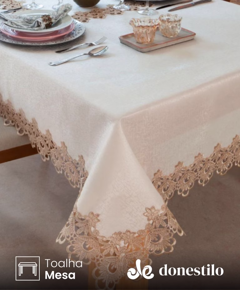 A Toalha de Mesa Retangular Jolitex, modelo Veneza, atende a 8 lugares. Com medidas de 1,60 X 300 cm, ela utiliza 100% poliéster, o que garante durabilidade e praticidade excepcionais. De cor bege, seu design romântico, que apresenta barrado e centro em renda, transforma qualquer sala de jantar ou cozinha. Além disso, ela cria um ambiente acolhedor, harmonioso e iluminado, proporcionando uma atmosfera serena para suas refeições. Essa toalha é a escolha ideal para quem busca elegância e conforto no dia a dia.