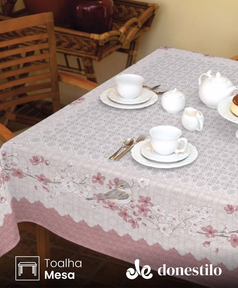 Sua estampa ilustra delicadamente a beleza da vida campestre com flores e passarinhos.