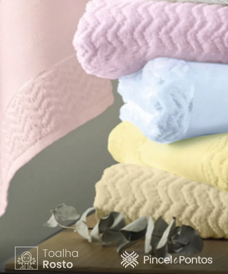 Toalha de Rosto Karsten Verona 100% algodão, barra de 11 cm, ideal para pintura, bordado e patch aplique. Boa absorção, perfeita para personalização e uso diário.