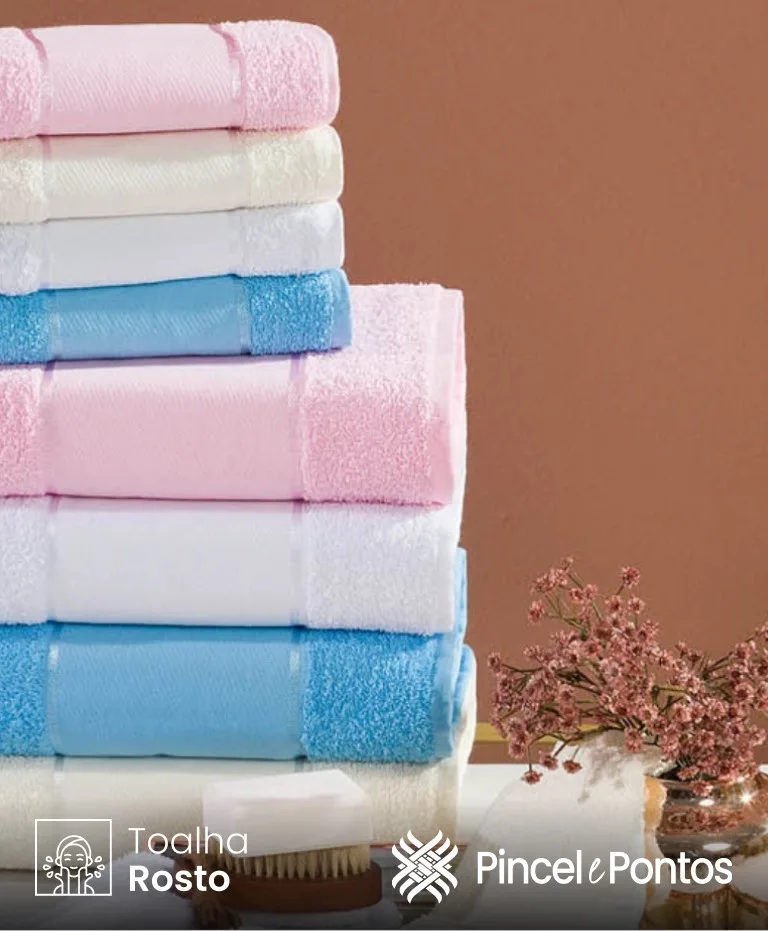 A Toalha de Rosto Valletex Arte 44 x 80 cm utiliza 100% algodão (Exceto efeito decorativo) e com gramatura de 340 g/m².