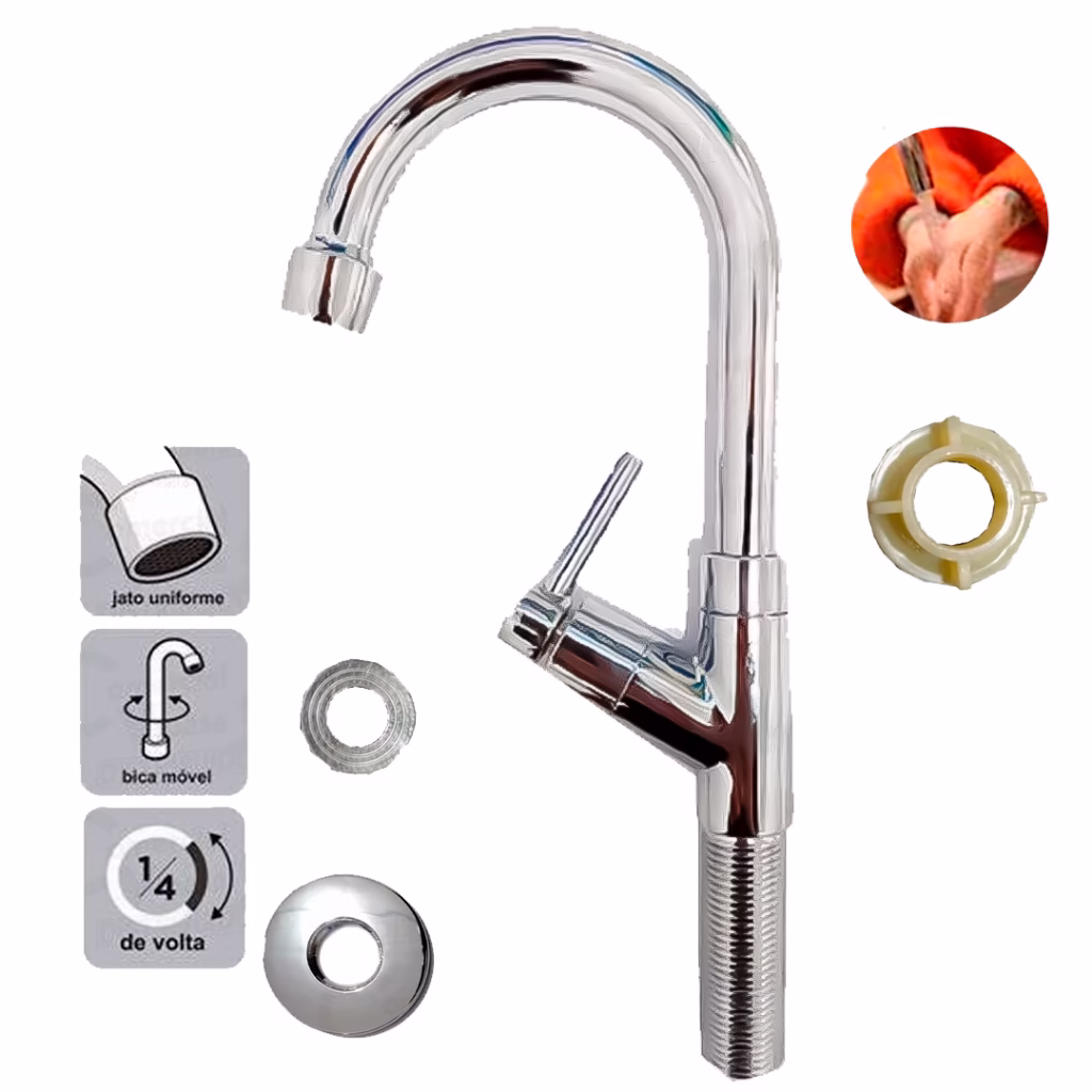 A Torneira em Metal Lavatório V13047 C72 1/4 De Volta possui sua bica móvel, o que facilita na hora de direcionar o jato. Seu formato é moderno e tem excelente acabamento. Ela é fabricada em Metal de alta qualidade, um material de grande resistência.