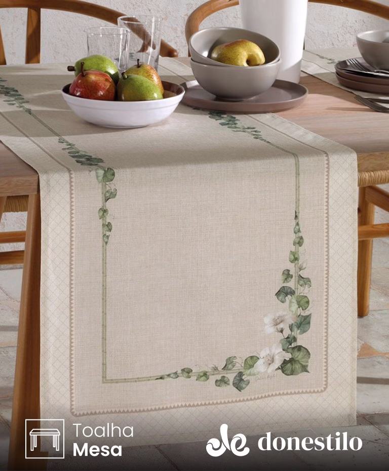 O Trilho de Mesa Döhler Renova Botânica mede 45×160 cm e valoriza sua mesa com praticidade e um charme especial.