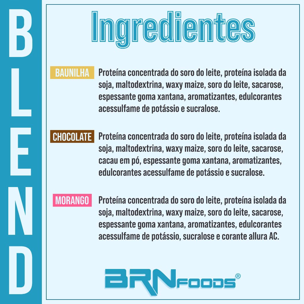 ⚡É um suplemento composto por 7 tipos de proteínas e seu principal objetivo é potencializar esse nutriente em sua dieta.Graças a uma composição completa, a Whey Protein Blend oferece o melhor custo benefício do mercado. Protein é a proteína extraída do soro do leite de vaca e esse procedimento industrial possibilita grande concentração de importantes propriedades nutricionais que beneficiam a saúde. Whey Protein Blend é consumida por pessoas que buscam uma vida mais saudável, praticam atividades físicas e têm o intuito de ganhar massa, melhorar o desempenho nos treinos, acelerar a recuperação dos músculos e aumentar a imunidade. Por conter colágeno hidrolisado, a Whey Protein Blend proporciona firmeza e elasticidade à pele, cabelos, unhas, cartilagens e tendões.